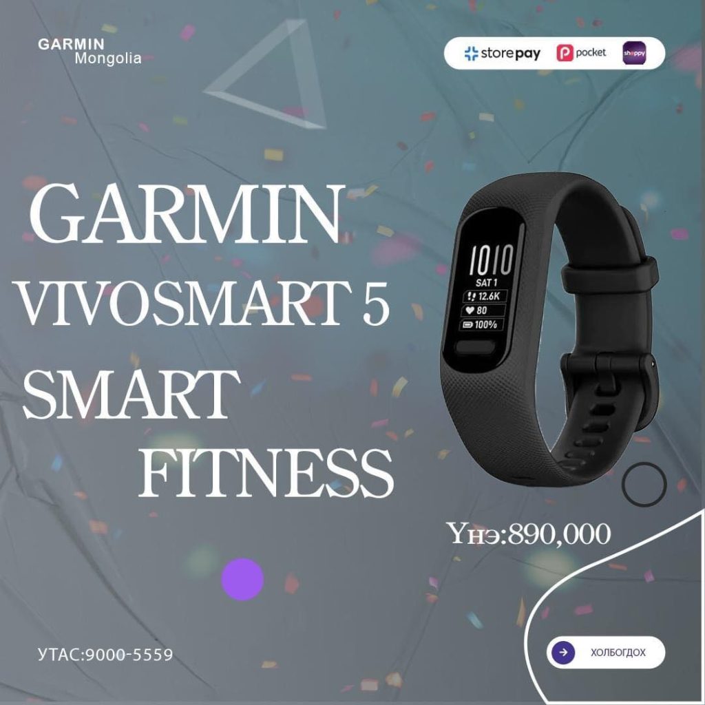 Өнөөгийн завгүй амьдралын хэв маягт зориулсан хамгийн шилдэг хэрэгсэл болох Garmin Vivosmart 5 цагийг Garmin брэнд танд танилцуулж байна. Загварлаг дизайнтай манай ухаалаг цаг нь адал явдлыг эрэлхийлэгч таныг бүхэл өдрийн турш урам зоригтой, эрч хүчтэй байлгахад туслах олон гайхалтай функцүүдийг олгодог билээ.